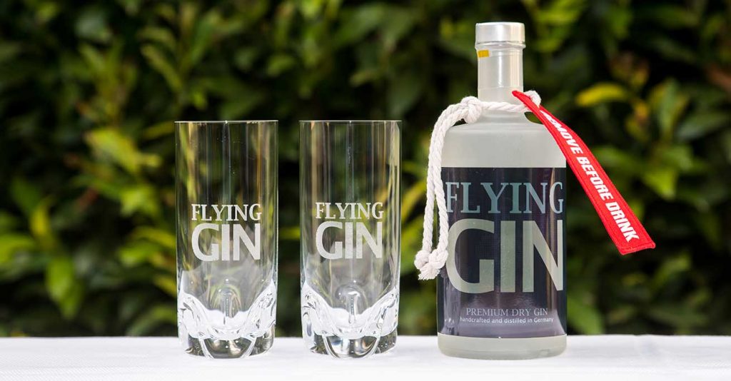 Der Flying Gin ist ein außergewöhnlicher und doch klassischer Dry Gin, der exklusiv für JUMP AWAY AVIATION komponiert und in einer kleinen Brennerei am Niederrhein destilliert wurde. Den Flying Gin erhalten Sie auf Anfrage an Bord unserer Flüge im Privatjet. Daneben können Sie den Flying Gin in unserem PlatinumAirShop online bestellen.